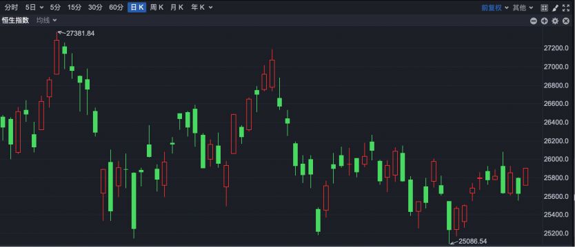 截至发稿,恒生指数最高报25882.84点,涨近1%。